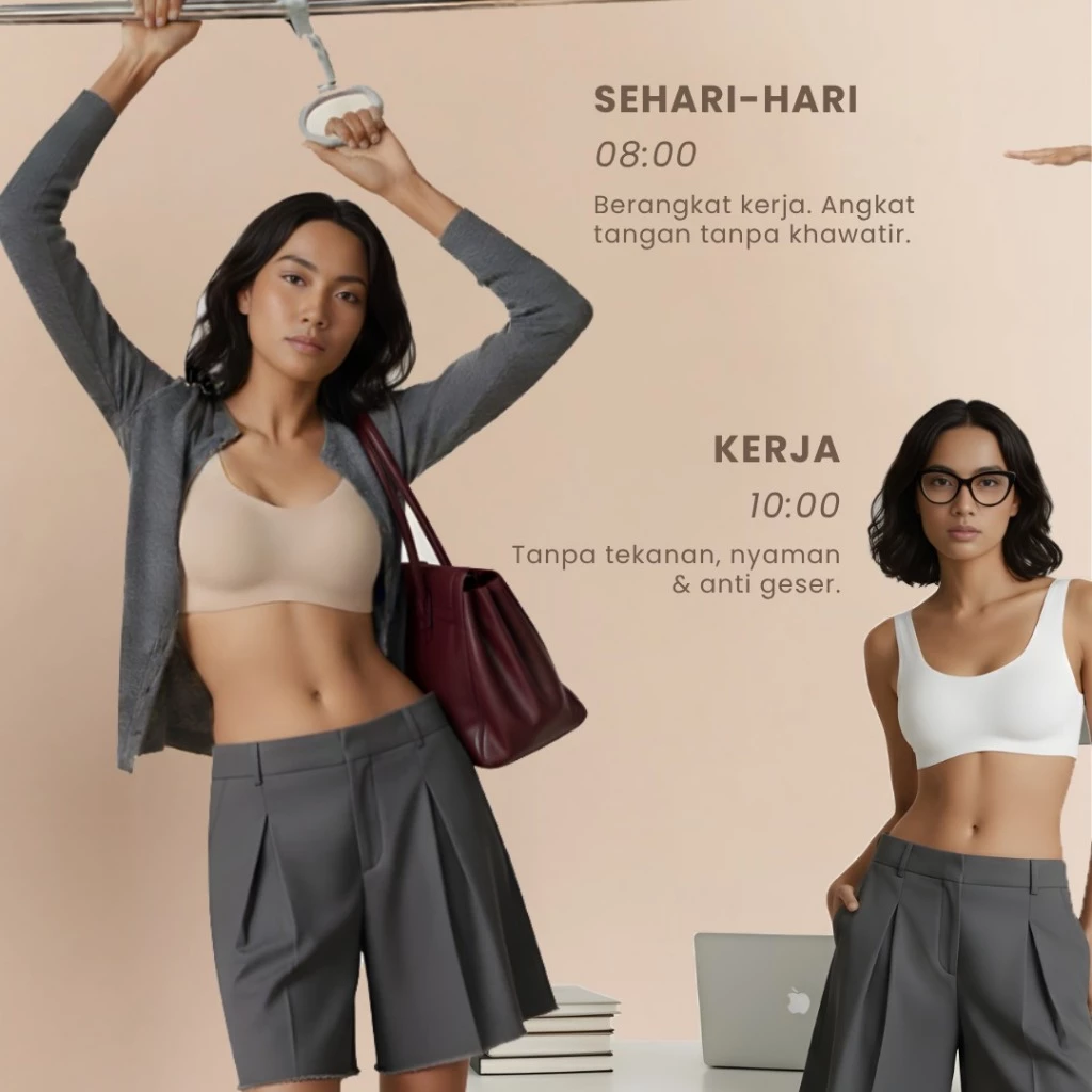 Tampil elegan tanpa khawatir garis bra menjiplak. Desain seamless menyatu sempurna dengan kulit untuk rasa percaya diri maksimal.