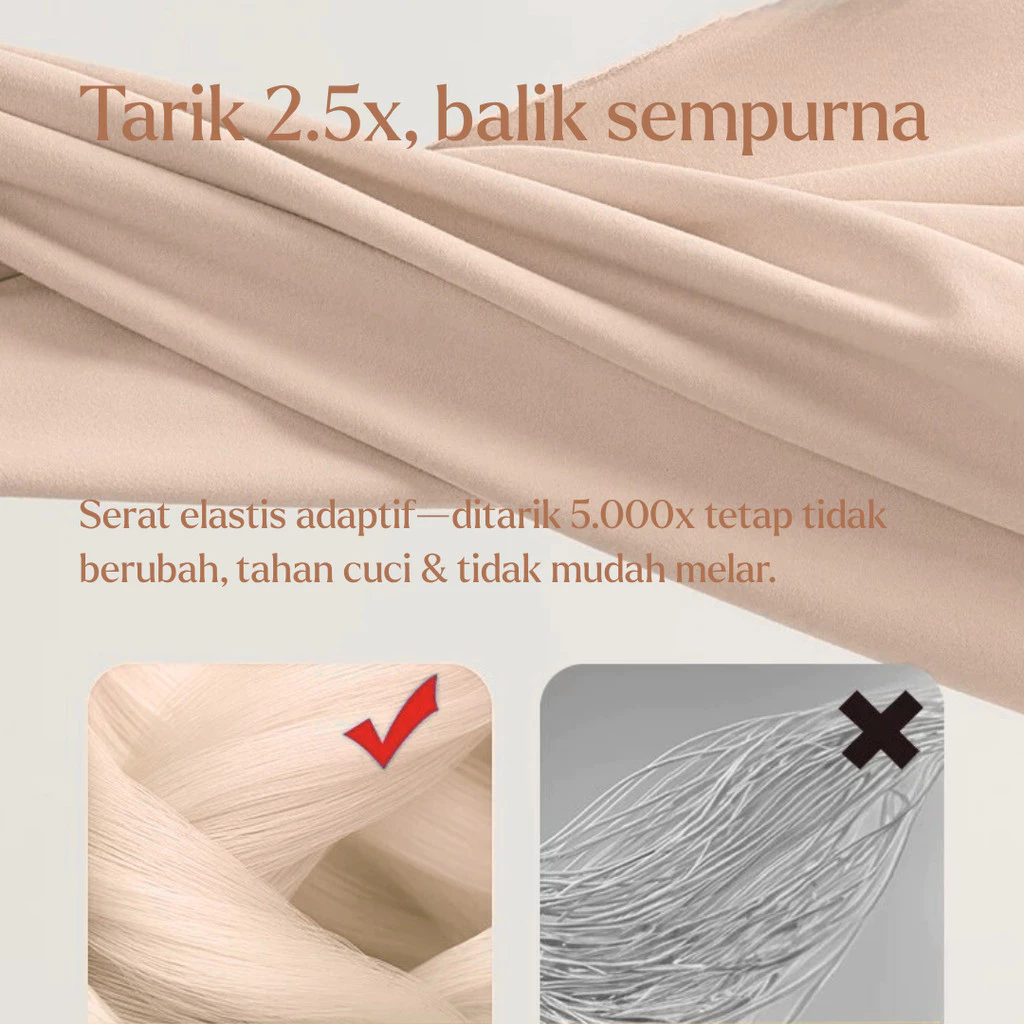 Menggunakan teknologi Zero Size Fit, yaitu ukuran yang fleksibel dan mengikuti bentuk tubuh tanpa rasa sesak atau longgar. Nyaman, pas, dan tetap stabil saat digunakan.